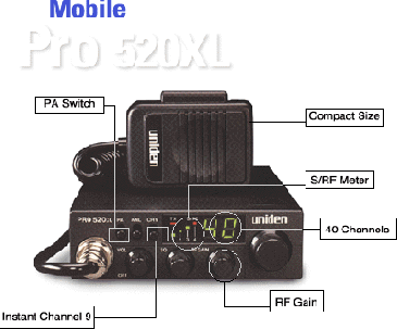 Uniden - PRO520XL - Compact Professional Mobile CB Radio with CB/PA Switch.